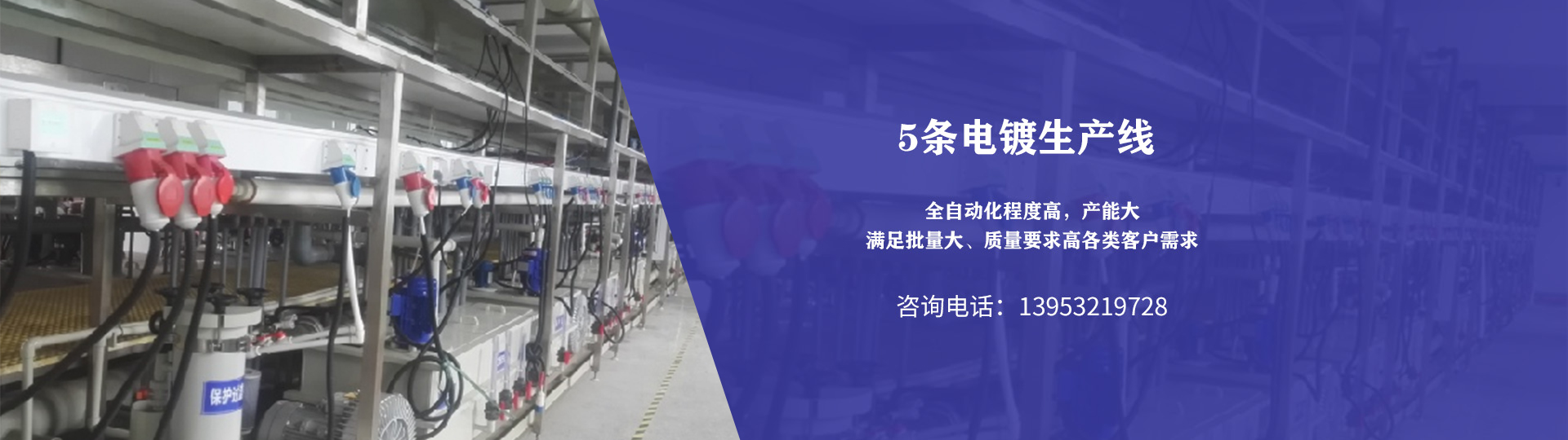 公司共有5條電鍍生產線,其中一樓:1條酸鋅自動線,1條堿鋅自動線,1條裝飾鉻生產線,二樓:1條垂直鍍鎳鍍錫自動線,1條U型鍍鎳鍍錫自動線一條,全自動化程度高,產能大,滿足批量大、質量要求高各類客戶需求。